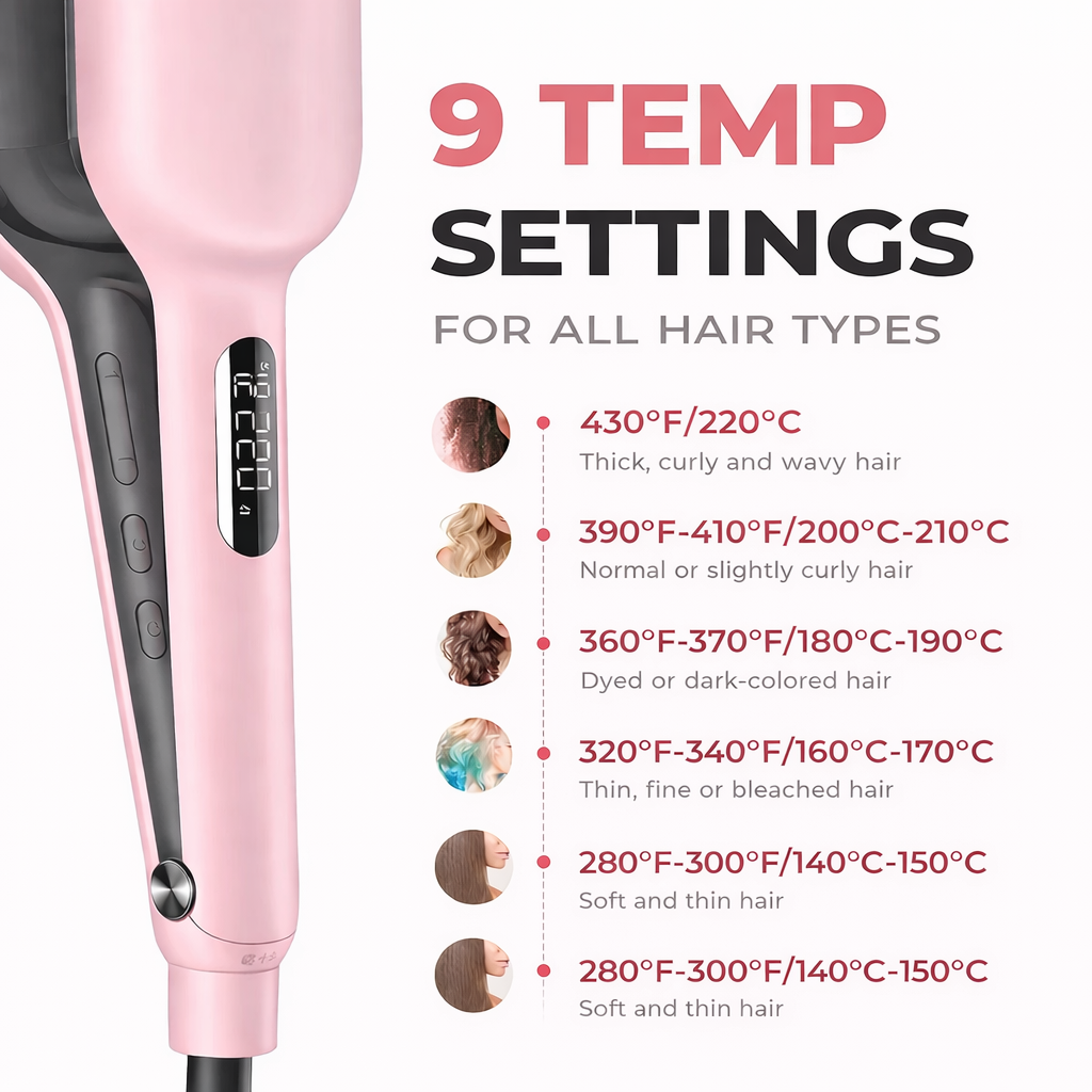 Its deep-wave design shapes hair evenly while advanced heat control and ionic technology lock in texture, reduce frizz, and maintain softness.