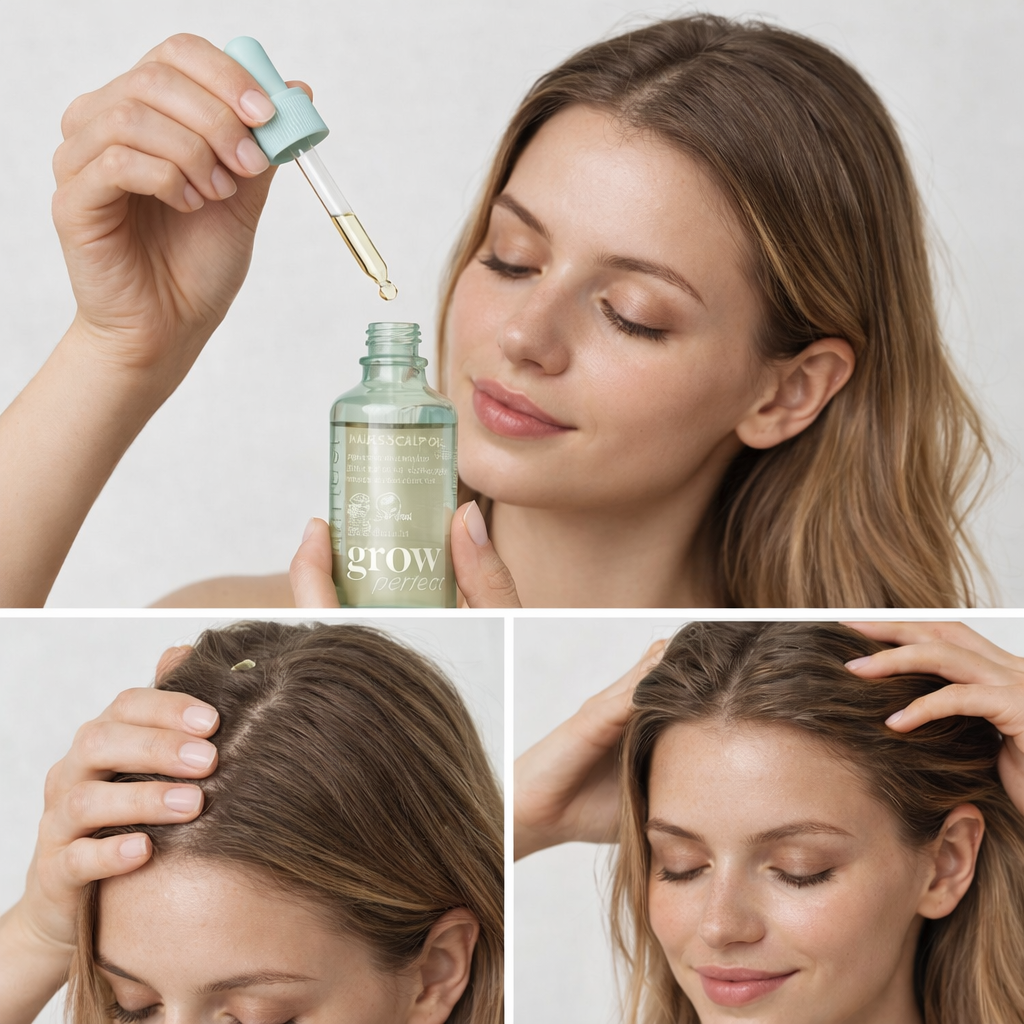 GrowPerfect™ | The Hair & Scalp Growth Oil is a pre-wash, nutrient-rich oil with 8 organic botanicals—including rosemary, coffee seed, and jojoba—to nourish, soothe, and protect your scalp while promoting healthy-looking growth.
